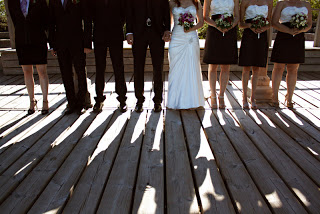 One of my bridesmaids is an aesthetician so we had pedicures the night before. My something “Blue” was my pedicure, and a blue streak in my hair. The girls all wore different shoes in a nude colour, which worked so nice with the black and white dresses. I bought shoe clips from FinkShop on Etsy to jazz up a pair of inexpensive shoes I had gotten at Spring. The “something old” that I wore was a necklace with a small pearl, owned by my grandmother, and my “something borrowed” was my veil, which my cousin wore in her wedding a few years back.