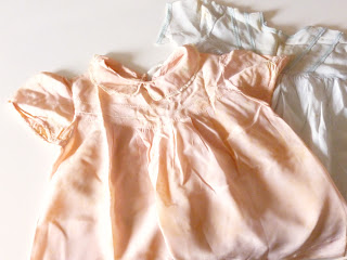 Among some of the items were little silk baby dresses and a small silk bonnet and cotton bib that belonged to Dan’s mom and Dan’s uncle. They are so precious, I love them dearly!