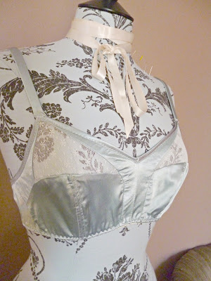I have some very 30's peachy satin in my stash that would be just perfect for this. This is a beautiful brassiere and I would definitely be interested. What kind of a shape does it give, i.e. pointy or not so much so?