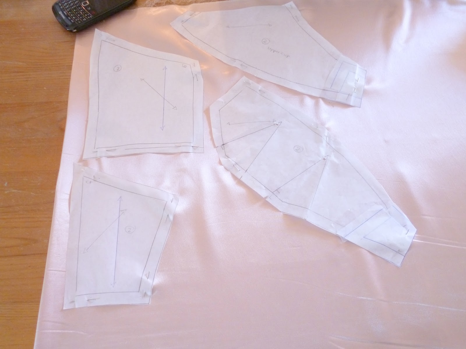 Now that you’ve made the necessary adjustments to your pattern, you can cut your fabric! I am using the same pink satin I used for the contrast on my corset. It has the slightest amount of stretch to it.