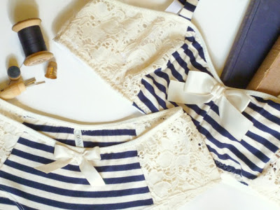 My local fabric store has been offering up lots of good finds lately. The lace on this set is so nice, cottony and stretchy. I have it in two colours – cream and taupe.