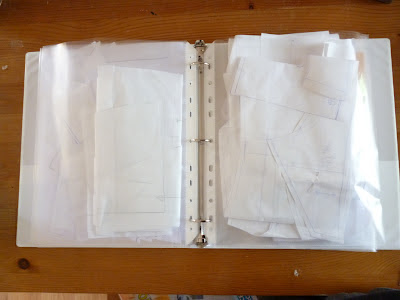 I got all of my patterns assembled in sleeves into a binder, so now I can actually easily find all of my pattern pieces! No more spending an hour looking for the back pieces to a pair of panties, or a missing bra band.