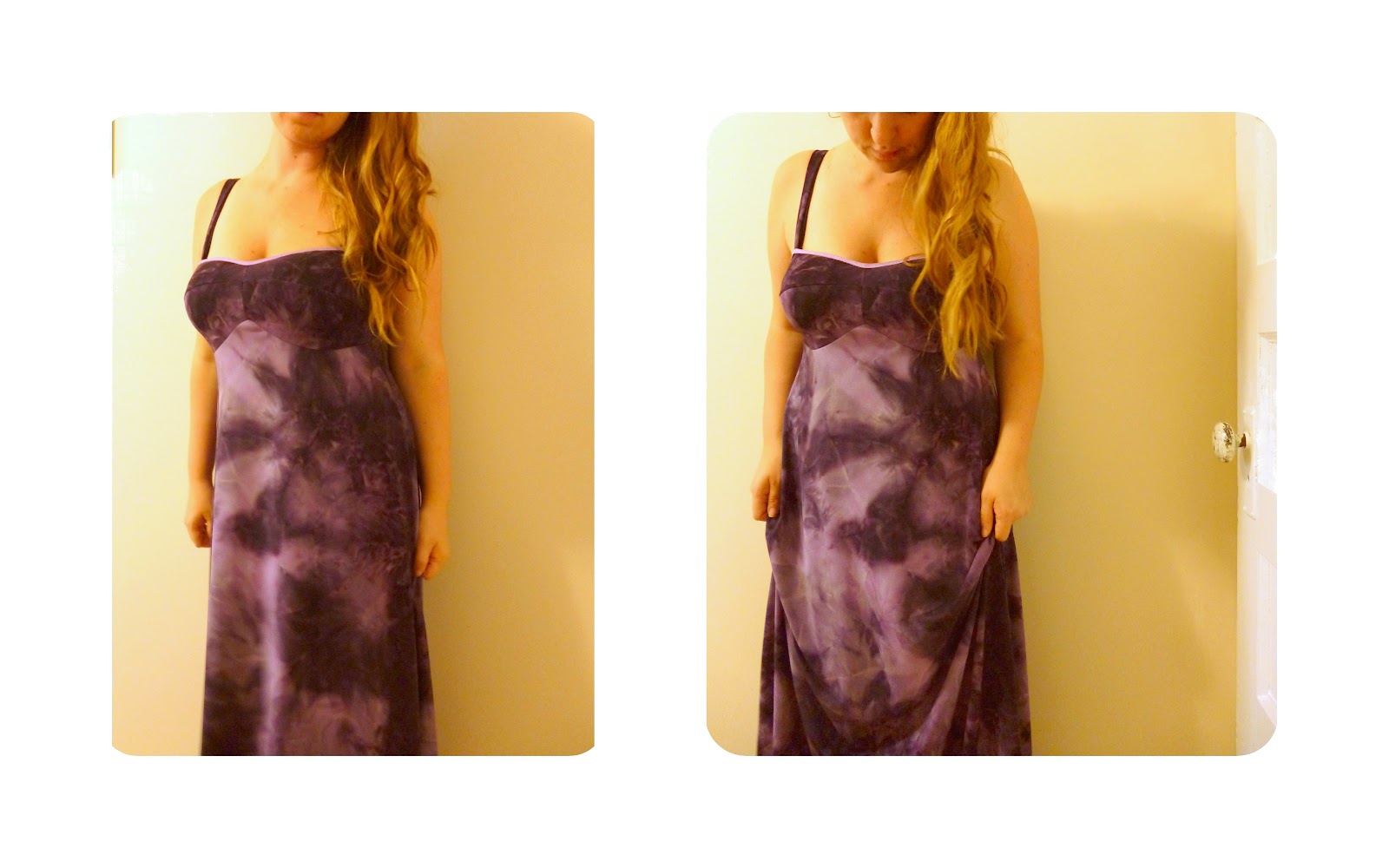 So I got this awesome tie-dyed knit in the clearance section last weekend. It’s been so hot here lately, maxi dresses have been the only thing I’ve wanted to wear. They are light and airy, cool, comfy, and look more put together than shorts and tank tops. I used the Ginger Pattern to cut this dress, with a very simple pattern manipulation.