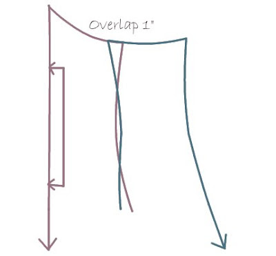 Cut the bust cups as you normally would – I did not line mine. I overlapped the Centre front and Side Front 1″ (because each piece has 1/2″ S.A.), and eyeballed how I wanted the side seams to lay. You could just as easily make this a princess seam dress. I extended my side seam down as long as I wanted the dress, gently curved the hem, then did the same to the back.