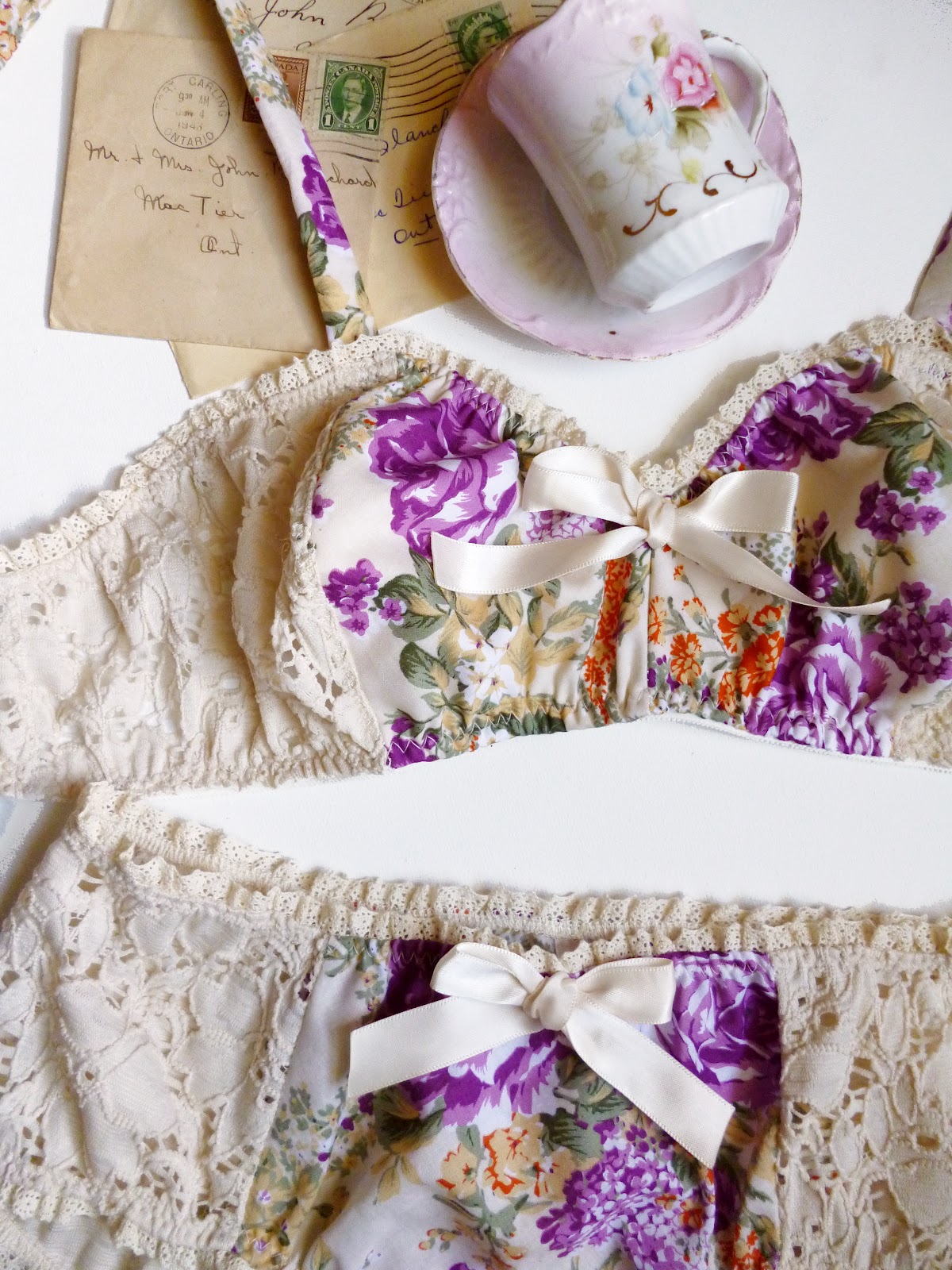 I am craving Fall like no one’s business. It’s still so hot here, was in the 30’s (Celcius) this weekend, but I busted out my fall wreath, and dug out my flannel sleep shorts. I’m ready for the heat to end and the crispness of fall to begin! I have some lovely heather grey jersey, blush sequinned net, jewel toned crushed velvet, nude lace, and a bunch of Venice lace appliqués that will become a part of my fall / winter collection.