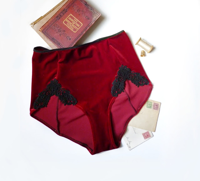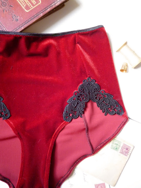 I made these Velvet High Waist undies, and sent the sample off for a photo shoot.  I had originally planned on using white lace appliques, but I think the black is a little more elegant.  One of the things on my “to do” list, is to work with more photographers and stylists to get editorial shots of my lingerie.  I’ve been lucky to have been contacted by a couple amazing photographers and stylists lately, and I can’t wait to have the time to work with them!  I would really love to be able to work one on one with a local photographer and stylist (Toronto?) sometime soon!