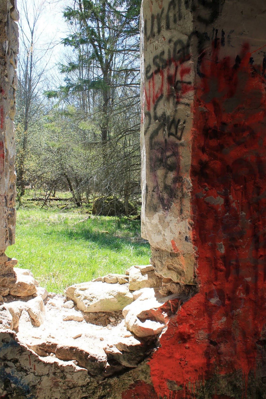 The coolest part of Eugenia Falls is this abandoned shell of what I think is an old mill (?). I have to admit, there was a sign, but I didn’t read it. A few years ago, Dan’s mom gave Dan a framed print of a photo she had taken of some graffiti. It turns out that she had taken the photo here, because we recognized the exact piece. The building is very cool, but has started to crumble a bit since I was there last.