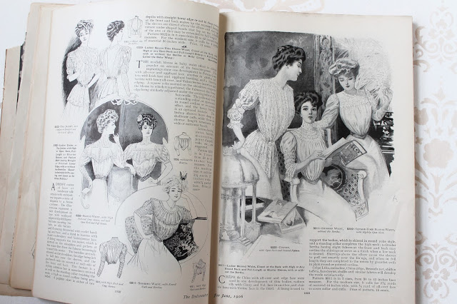 On Thursday I photographed some new items on the new backdrops I made.  I think I have stencil-fever because I want to stencil an entire wall now.  Anyway,  I also pulled out a couple of my antique magazines from my collection to use as backdrops  I totally forgot that I had picked up a copy of Delineator Magazine from 1906 a few months ago.  I never really considered myself a ‘collector’ but I suppose I actually do ‘collect’ fashion magazines, pre-1930.  There is an antique store downtown that I visit on a monthly basis, and snatch up any magazines they may have.