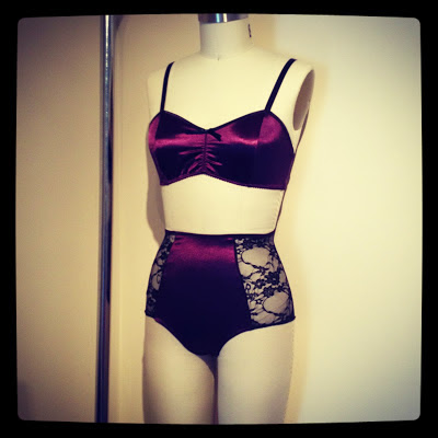 I fit in some sewing, and I’m now a week ahead of schedule, and I hope after this week, I will be two to two and a half weeks ahead! I haven’t been ahead in… over a year. So I feel a lot of relief. I snuck in some new items this weekend. I just got a shipment of stretch satin spandex that I had to make into something. This stuff is so nice. It feels so silky and smooth, but is knit and super stretchy. It can be machine washed (hanged to dry), and doesn’t wrinkle. It is my new favourite fabric. I really like it for the bras. I have kept a few for myself. I am a small-band/large-bust girl, and I find these really comfy… the perfect thing for under a tank top, especially when it’s hot. I hate foam cups when it’s hot.