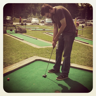 This morning we went to mini-putt. Dan won by 15 strokes, but I did manage to redeem myself with one hole-in-one. The course we went to is by far one of my favourite mini-putt courses, we used to always go as kids. It was a lot of fun.