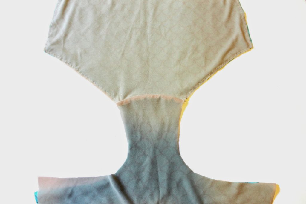 1. Cut out the front and back in your swimsuit fabric as well as your lining. You now have a Front Self, Front Lining, Back Self, and Back Lining piece.
