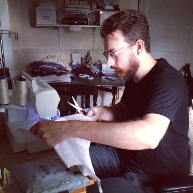 awesome!!! of course we love pics of cute guy with a beard sewing stuff for his baby 😉 love that!