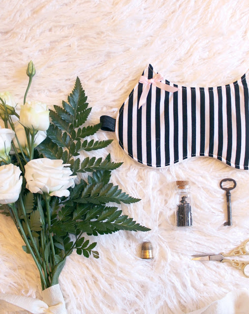 I’m starting to run dangerously low on My Fleur Romper fabric… I absolutely adore this fabric and didn’t want to let a single scrap go to waste, so I’ve decided to made sleep masks with it as well. I made a few of these cat-ear sleep masks for Changing of the Garnet but wanted to offer them in my shop too!