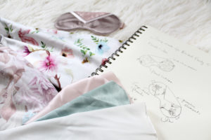 For my project, I used Spoonflower’s Fill a Yard 2-yard cheater quilt in Cotton Sateen. Sateen is one of my favourite fabrics for sleep masks as it is easy to work with and has just a slight sheen. I paired each of the prints with scraps of silk charmeuse (backed with interfacing) from my own stash.
