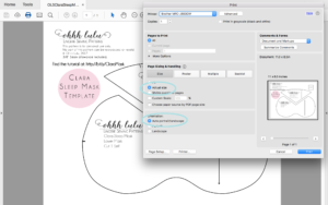 Just a quick note about printing, and this goes for all printable sewing patterns. Make sure you’ve selected “No Scaling” and “Auto Portrait/Landscape” To ensure your pattern prints right the first time.
