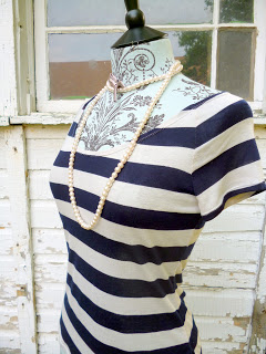 This is a top I recently made for an old friend who contacted me through facebook. She showed me a picture of something she liked, but the original was looser fitting. She wanted something that would fit a little closer to the body. So, I used my favourite Burda Style Pattern (This Raglan Sleeve Tee), made the necline a little more scooped, changed the long sleeves to cap sleeves, and added a large heart cut-out to the back. The cut out is bound with navy bias binding. Binding a heart, and getting the binding to lay flat was quite the feat of patience!