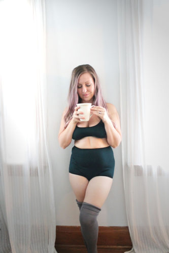 I have this problem. It’s not just a design problem, but a problem that infiltrates my normal life as well. I’m not sure if it’s part of being a perfectionist, or what it is… I’ll use this pattern as an example. I started with a really simple design – the scoop neck bodysuit with a built in shelf bra. Then I thought, “a thong would be a nice addition… but wouldn’t it also be cool if I had a high neck version? What if I added ruffles? It would be so easy to make this into a tank top… oh, if I added straps I could make it a garter tank! But if it were longer it would make a really comfortable slip-dress / nightie… and what if I used the shelf bra as a stand alone bra pattern… what if I added cut-outs to the neckline?” You can see, my one idea grows and grows and grows until it is so overwhelming that I come to a stand still.