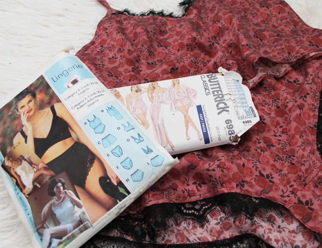 Years before I started sewing lingerie, I walked into a local thrift shop and spotted a 1980s lingerie pattern from one of the Big 4 Pattern companies. It had already been cut and was missing a couple of pieces, but I was able to cobble together one of the teddies and a pair of underwear. It kind of sparked that lingerie-sewing love within me.