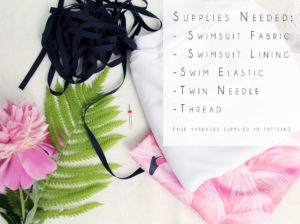 You’ll need a couple different supplies. First of all, you’ll need swim-appropriate fabric, so something like a nylon spandex/lycra blend is ideal. In my Cindy Bikini Post, I outline some places to buy swimsuit fabric. You’ll also need swimsuit lining, in the same yardage as your exterior fabric.