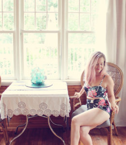 Lastly, I’ve got a new obsession… a dollhouse! This dollhouse was made by my uncle for my cousin Amanda years ago (like 20 years or so). After he passed away, it got stored at my parents house where it had a bit of an accident (got knocked over). I couldn’t bare to see it go to waste so I stored it in my attic for another 5 years. A few weeks ago I dragged it downstairs, got out some glue and started putting it back together. I took off the gingerbread trim, added a plain fascia and fresh paint. I did a bit of “landscaping,” made the first floor open concept, and am waiting on new flooring to arrive. I look forward to working on this every day! It has been so much fun and a nice change of pace from lingerie.