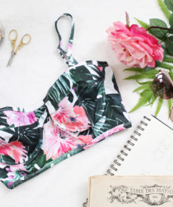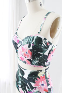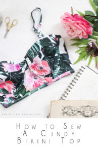 I used my Cindy Pattern to make this bikini top. My Cindy Pattern is a fairly simple to sew underwire bra with full coverage through the cups and a long-line band. This bra is designed to be sewn with stretch fabric through the cups. It’s a personal preference of mine, I’m not a big fan of foam or rigid cups. I like a softer fit and look.