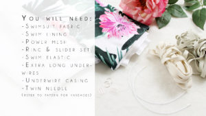 You’ll also need swim elastic, so something that is chlorine resistant, though really almost any plain elastic will do. Just looking for something 1/4″-3/8″ wide. The elastic is not visible on the finished garment, but I try to get something that coordinates with my exterior fabric – white for light coloured bathing suits and black for darker fabrics. I also use a twin needle. I’ve used the Ava Pattern for my swimsuit, but really any panty pattern you like should work!
