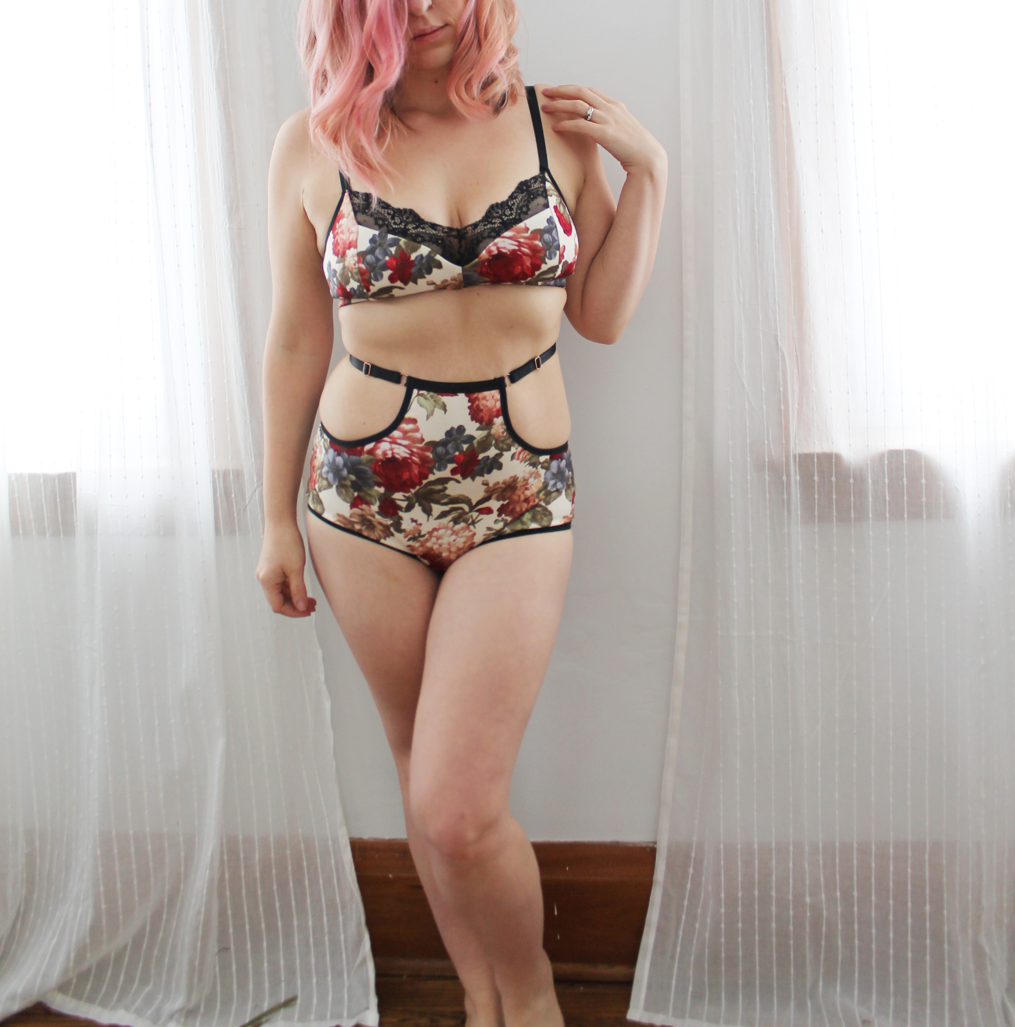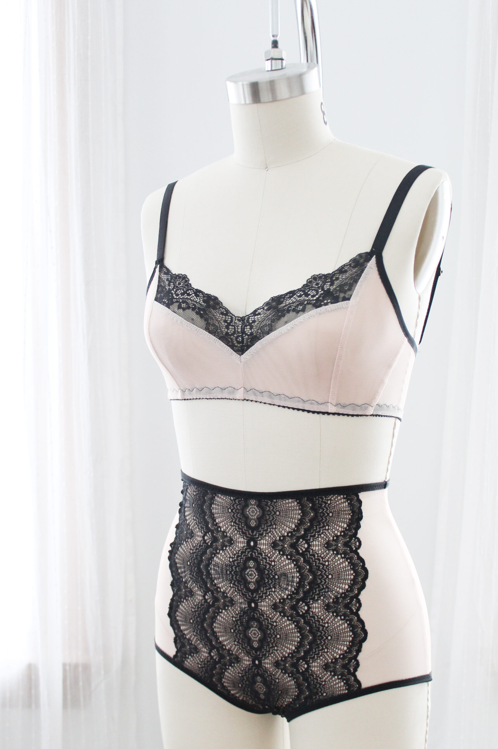 I love the Ava Panties. They are so comfortable to wear – the perfect underpinning for vintage clothes or high waist jeans or pair them with a flowy top for cool-weather sleep wear. They even make for the perfect swim bottoms! These panties are flattering and versatile. I’ll show you how to add a lace overlay and sexy adjustable straps and cut-outs. These instructions will show you a quick and easy way to finish your waist and leg openings with fold over elastic, but feel free to experiment with different methods and finishes! Please visit my YouTube channel for a full video tutorial on how to sew the Ava Panties.