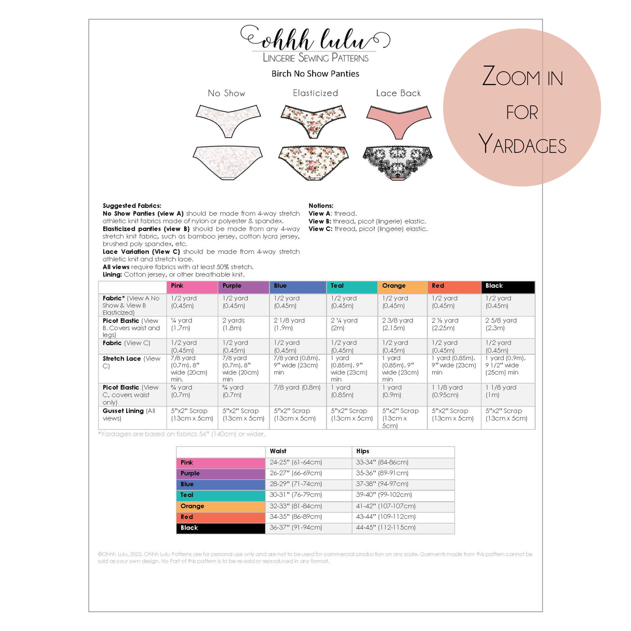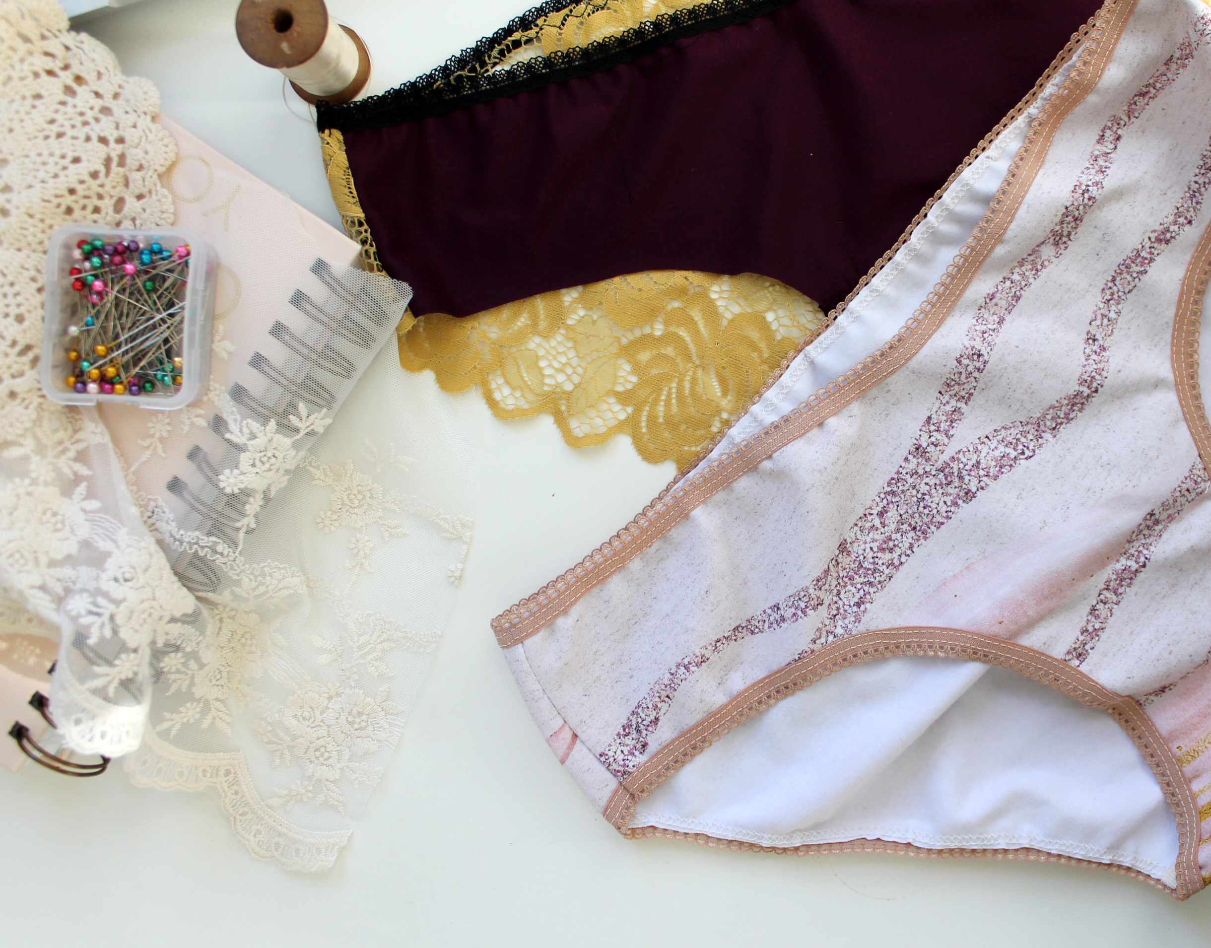 You can sew the basic variation of “No Show” Undies in under 30 mins. With a little more time, you can experiment with a lace back or elasticized leg and waist. My favourite thing about these, aside from how comfortable they are, are how quick they sew up!
