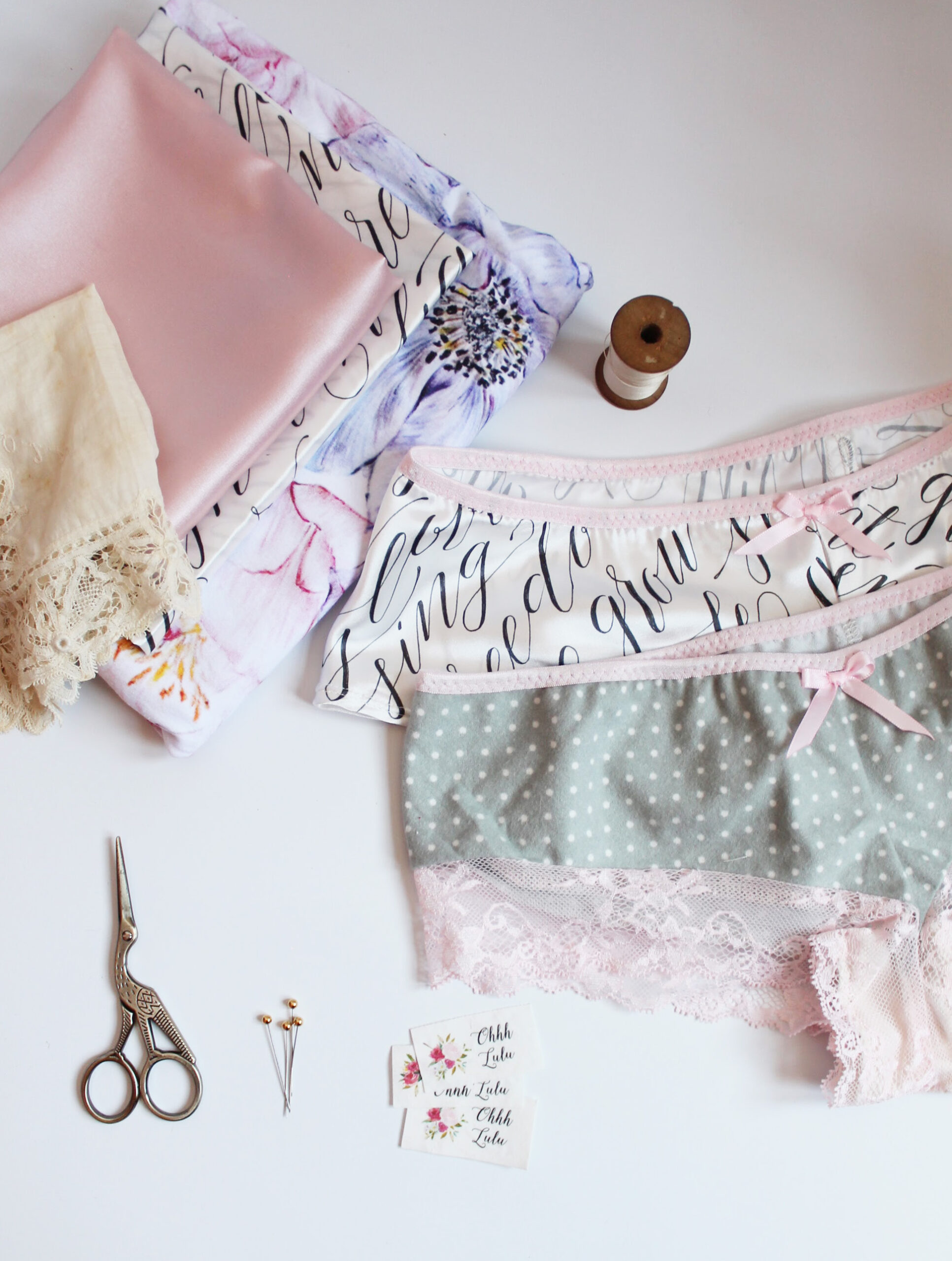 The Bryony French Knickers are a modern take on vintage French knickers. They feature a daringly low rise and cheeky cut. They are designed so that you can use pretty woven fabrics, like satin, charmeuse, and flannel – any lightweight woven with good bias stretch will work! The Bryony Knickers have two leg variations – twin stitched or lace with a lined gusset. These make for great vintage-style knickers or pretty sleepwear.
