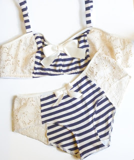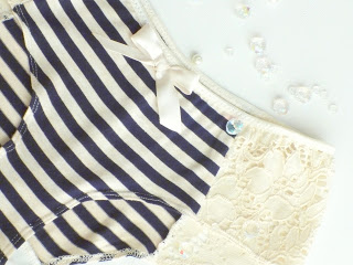 I started this week off on a good foot, finishing up a ton of new panties for my 3 for $60 deal. One of my favourites is this red striped nautical pair. I’ve been hoarding this fabric for a little while, waiting for the perfect thing to sew with it… and I think I’ve found it!