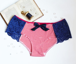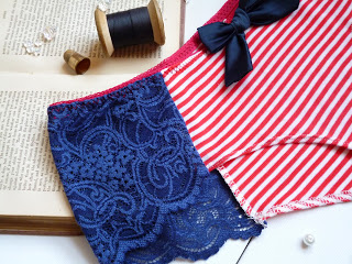 As I was developing this pattern I wanted to come up with a way to use scalloped stretch lace on a high waist thong – that’s View C of the pattern. It’s a little bit Ultimate Lace Panties mixed with a little Ava Panties and I’m really happy with how it turned out. The style lines allow you to mix and match colours and fabrics, one of my favourite things to do with a design!