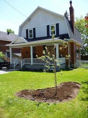 I never, in my life, thought this house could look so neat and tidy.  Dan and I used to drive past this house on our way to work every day and I never gave it a second glance.  Now with some paint, new gardens, GRASS, and a new apple tree, it’s looking pretty darn good.