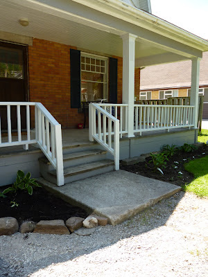 As a testament to how much Dan loves me, he dug through our very compacted gravel drive way so I could have a garden on the right side of our front stairs.  Previous to this, the gravel went right up to the stoop there.  Here’s a reminder of what our house looked like about 2 months ago: