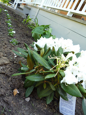 My mom and I went out flower shopping on Saturday morning.  We each got a rhododendron, and I got a hydrangea, some veggie plants, and a bunch of annuals. We broke up some hostas and lilies from my mom’s  gardens and planted them here as well.  Dan and I also planted an apple tree at the front of our property! We have a crab apple tree in the back, so we just might get apples one of these days.
