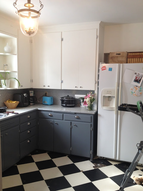 Right now, we’re (actually I am) painting our cabinets, adding new hardware and changing out old light fixtures.  It’s looking good, but the process is so slow. Painting cabinets is so much cheaper than buying new ones, but it isn’t a quick weekend project. Anyone who tells you otherwise is a liar, plain and simple!! It is a process of removing hardware, washing with TSP, sanding, priming, painting, then waiting several days for the paint to cure. Of course, all of our hardware had years of paint build up on them. If you are going to paint cabinets, please, please, please, remove the hardware first!