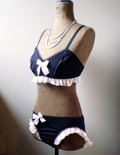 I finished off two custom orders, both bra and panties sets. The lace ruffle one is my favourite. I just love frothy, gathered lace! The sad part of today though is…